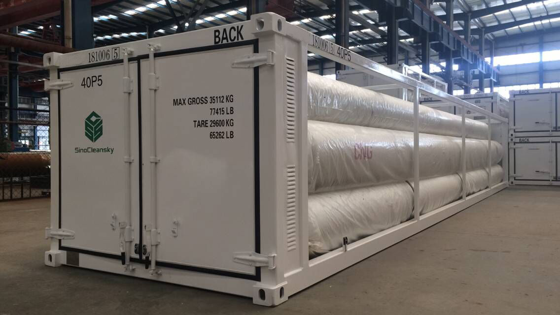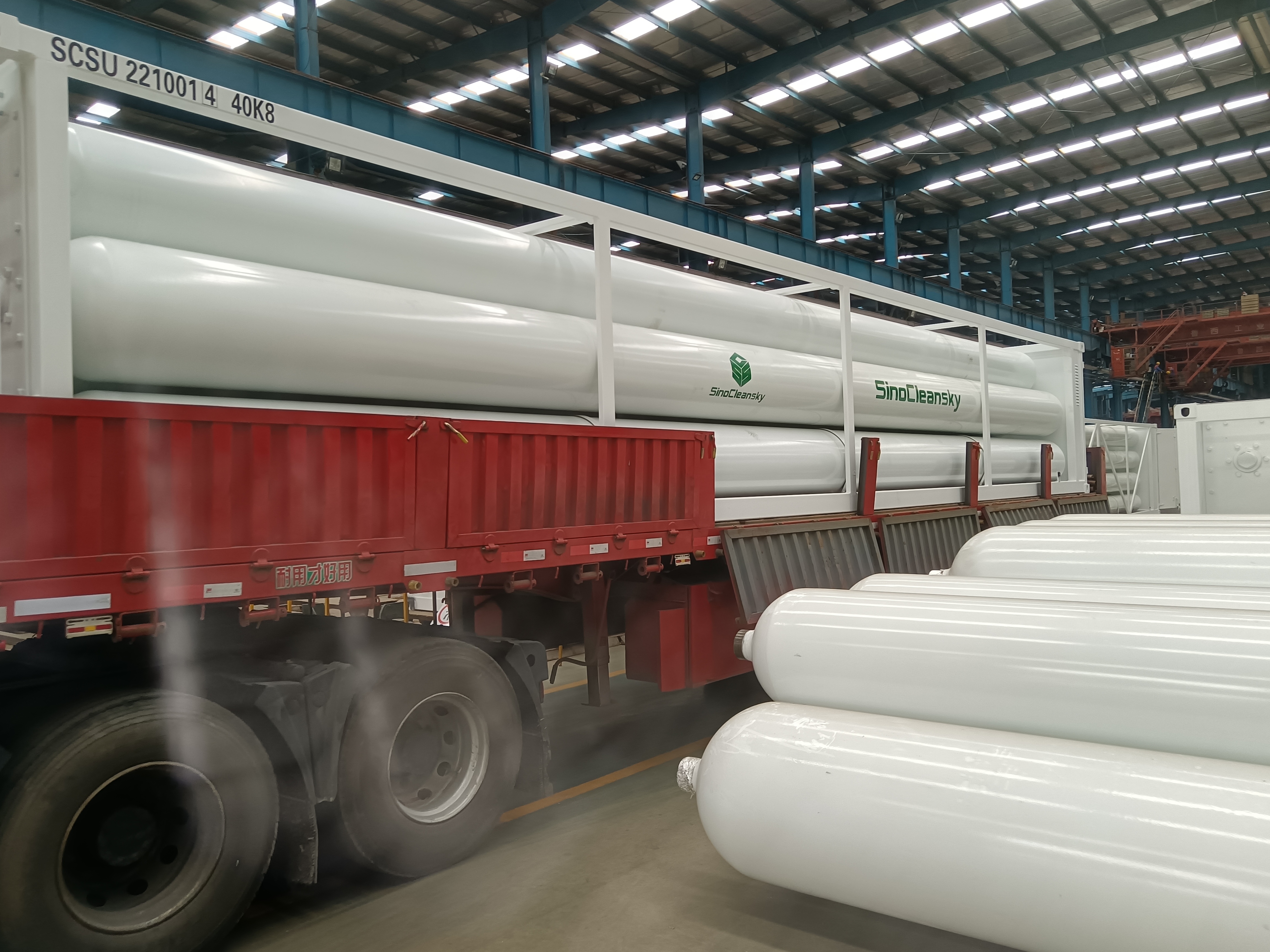 Application: CNG storageSpecs: 40ft 9tubes skid, w.p.250barLocation: Pakistan"SinoCleansky CNG jumbo tube containers enjoy the advantages of big volume and lighter weight, ideal for CNG transport and storage!"